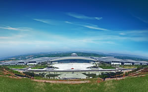 重慶國際博覽中心整體呈蝴蝶造型。其場館室內展覽面積20萬平米,共16個全平層無柱式展廳,單個展廳使用面積1.15
